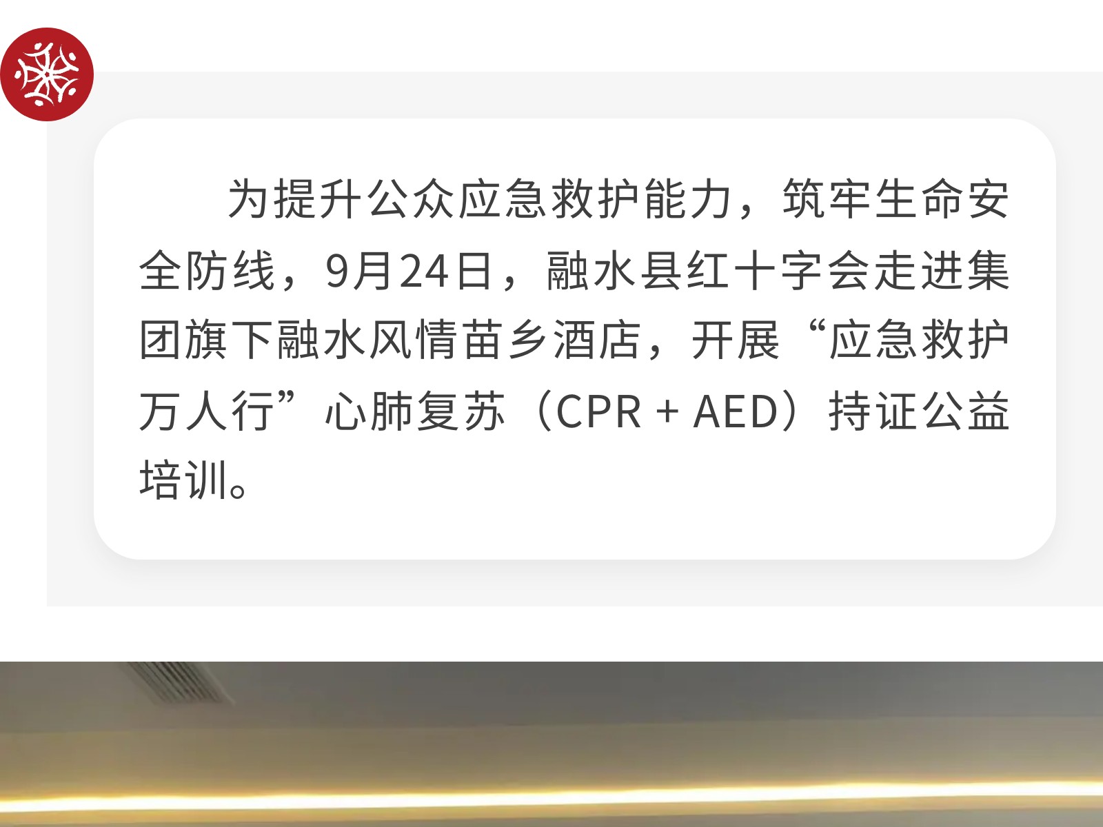 融水縣紅十字會(huì)到集團(tuán)旗下融水風(fēng)苗鄉(xiāng)酒店開展“應(yīng)急救護(hù)萬人行”心肺復(fù)蘇持證公益培訓(xùn) 發(fā)布時(shí)間:2025年10月14日 15時(shí)來源:本站原創(chuàng)瀏覽:39 人次