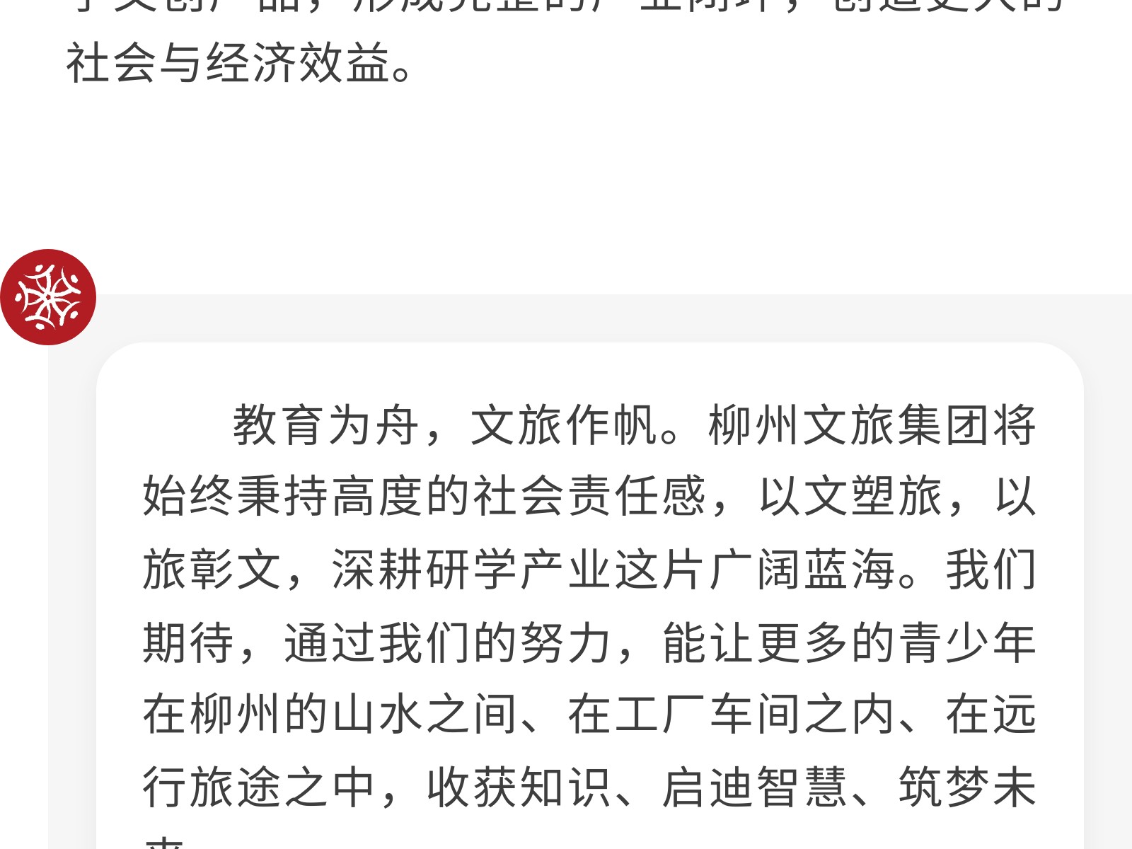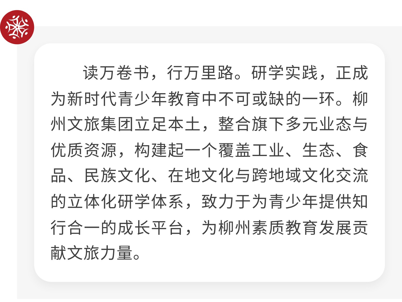 【鑄就研學(xué)新高地,賦能成長(zhǎng)新未來(lái)】柳州文旅集團(tuán)研學(xué)產(chǎn)業(yè)實(shí)踐與展望 發(fā)布時(shí)間:2025年10月15日 09時(shí)來(lái)源:本站原創(chuàng)瀏覽:39 人次