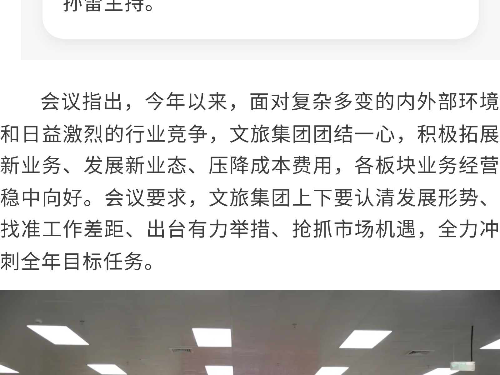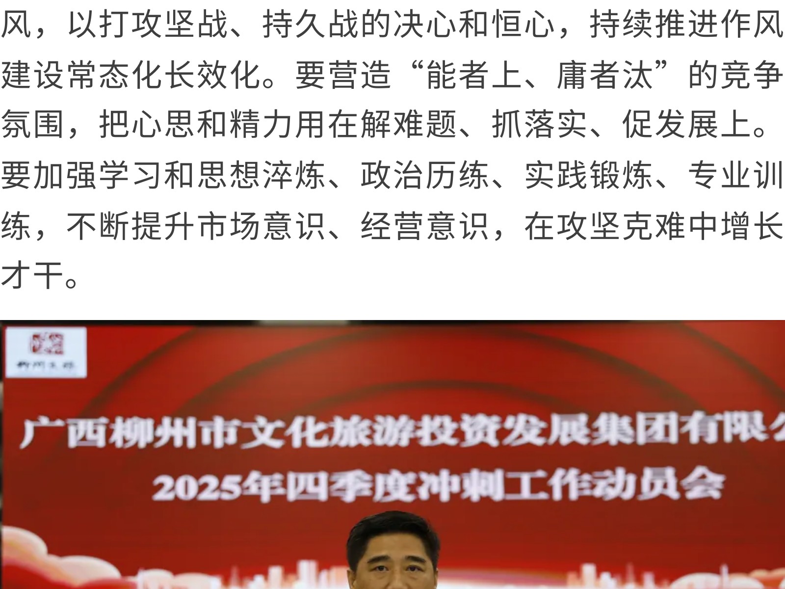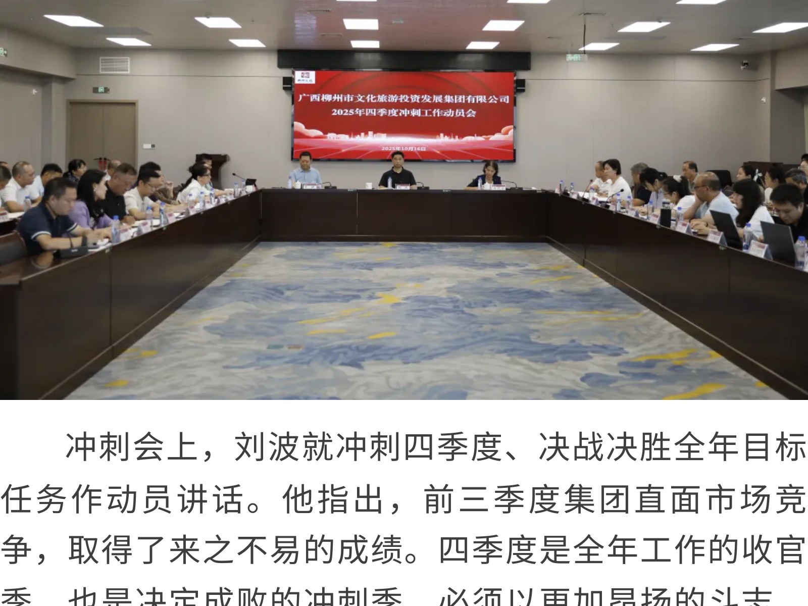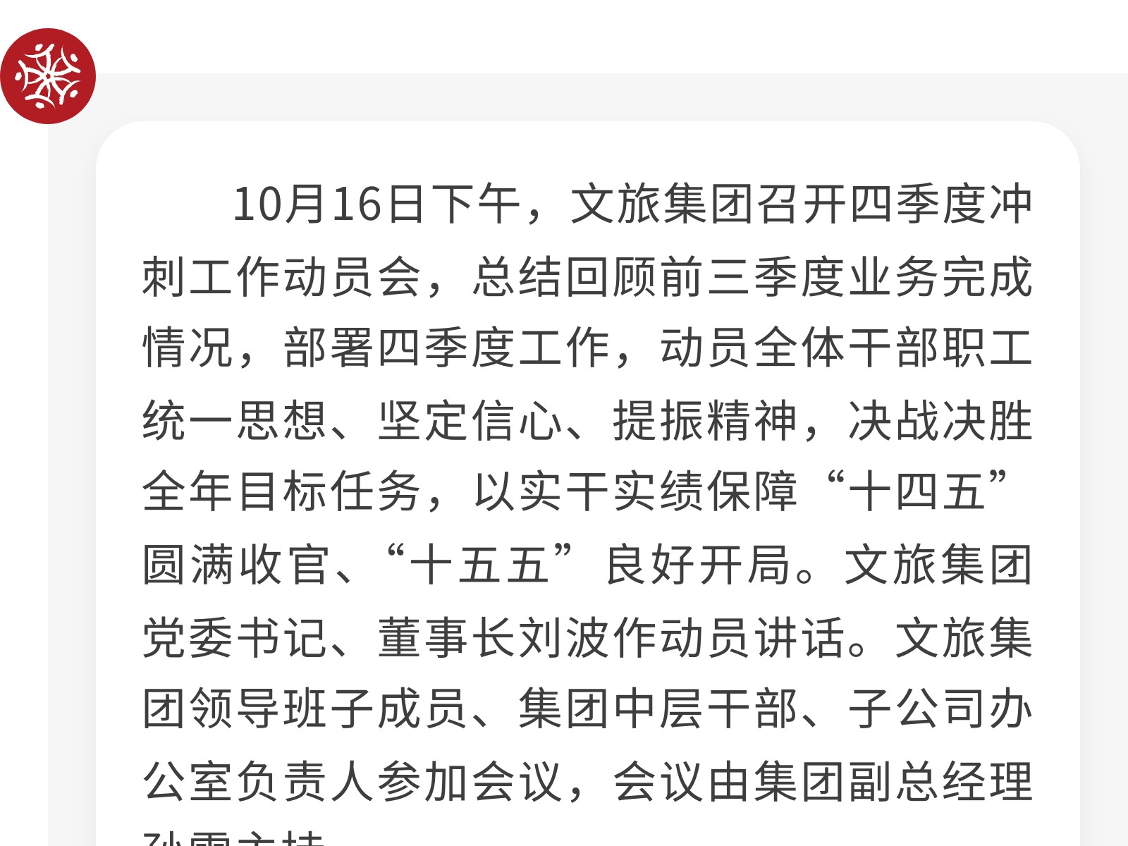 文旅集團(tuán)召開四季度沖刺工作動(dòng)員會(huì),決戰(zhàn)決勝全年目標(biāo)任務(wù) 發(fā)布時(shí)間:2025年10月17日 10時(shí)來源:本站原創(chuàng)瀏覽:69 人次