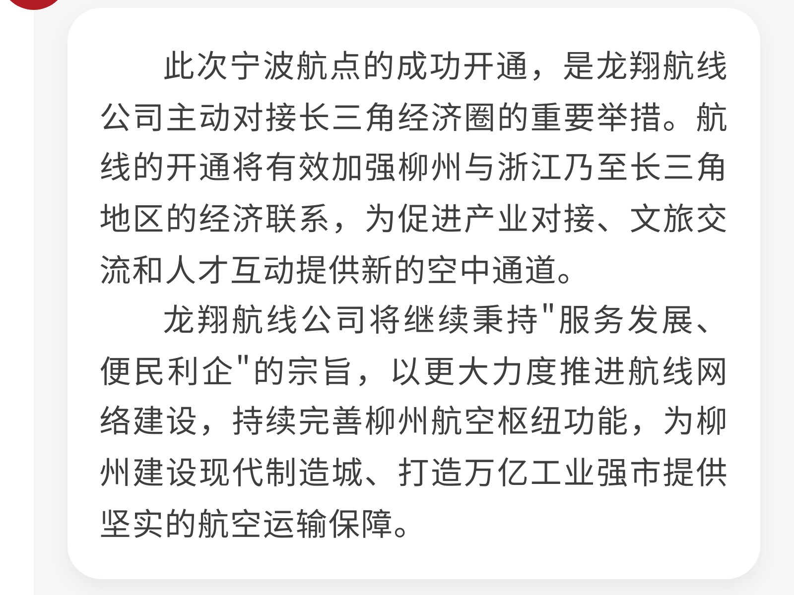 航線布局再突破!集團(tuán)旗下龍翔航線公司成功開通寧波新航點(diǎn) 發(fā)布時(shí)間:2025年11月12日 11時(shí)來(lái)源:本站原創(chuàng)瀏覽:58 人次