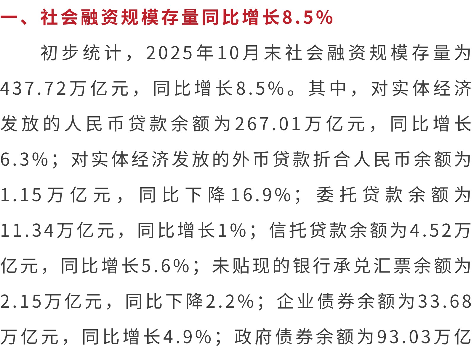 2025年10月金融統(tǒng)計數(shù)據(jù)報告 發(fā)布時間:2025年11月26日 17時來源:本站原創(chuàng)瀏覽:65 人次