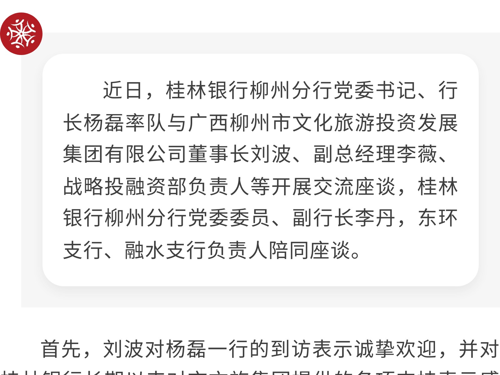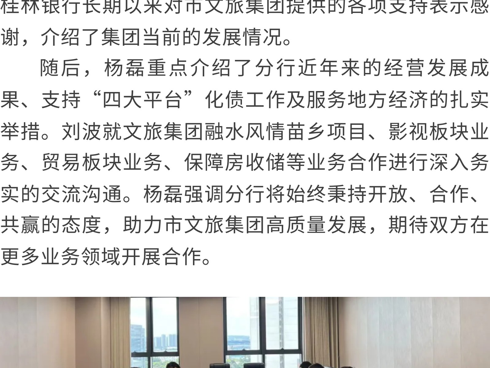 桂林銀行柳州分行到市文旅集團(tuán)開展交流座談 發(fā)布時(shí)間:2025年11月28日 09時(shí)來源:本站原創(chuàng)瀏覽:53 人次