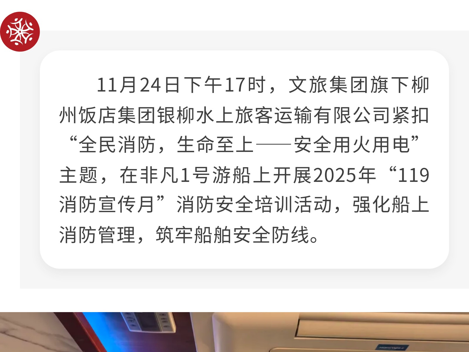 【強(qiáng)化船上消防,守護(hù)航行安全】銀柳水上旅客運(yùn)輸有限公司開展消防安全培訓(xùn)活動(dòng) 發(fā)布時(shí)間:2025年12月09日 10時(shí)來源:本站原創(chuàng)瀏覽:48 人次