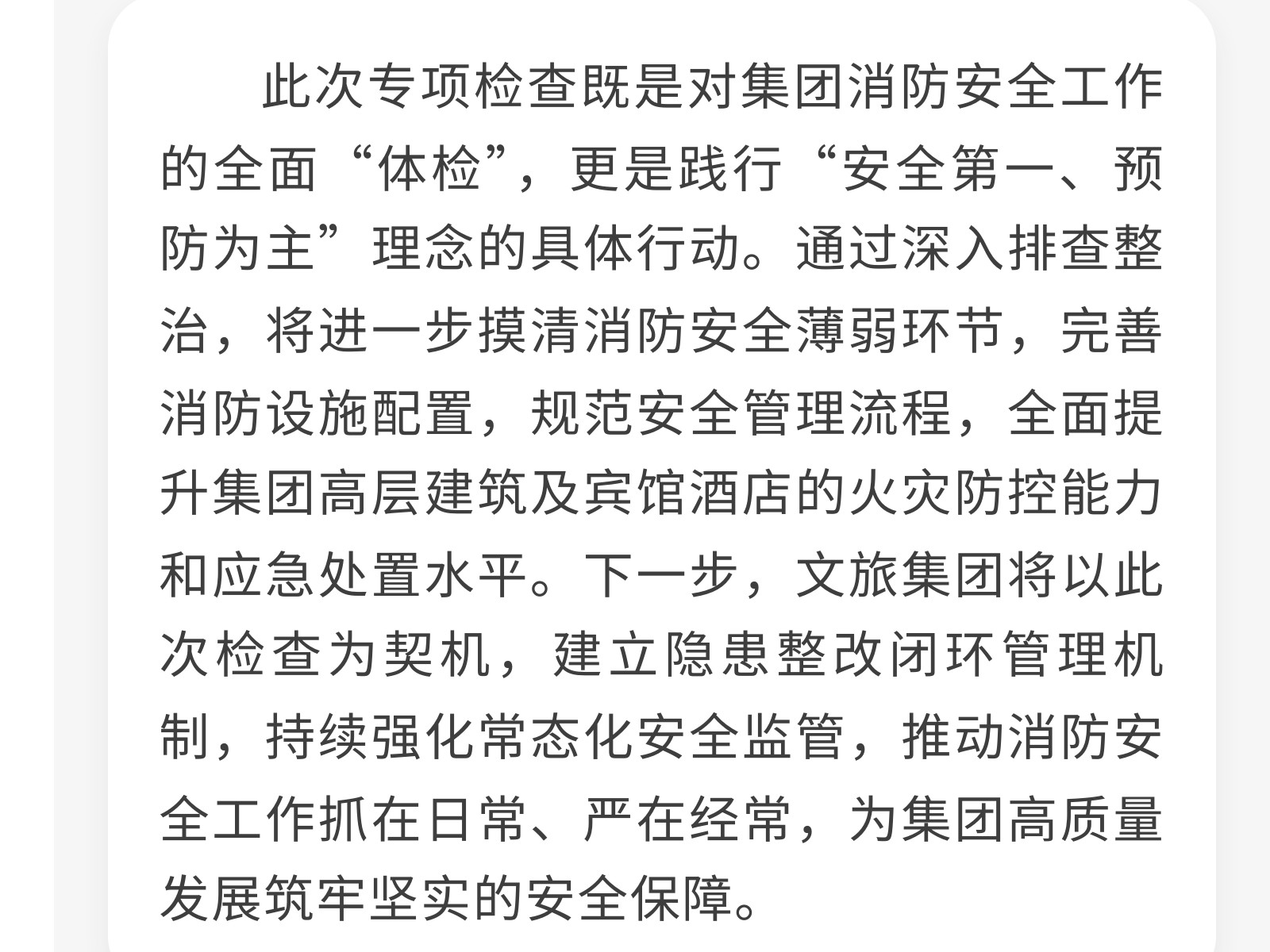 【繃緊安全之弦 筑牢防護屏障】文旅集團開展高層建筑及賓館酒店安全生產(chǎn)消防專項檢查 發(fā)布時間:2025年12月11日 10時來源:本站原創(chuàng)瀏覽:35 人次