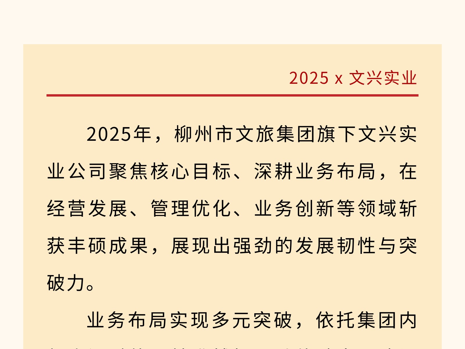 【文旅聚勢2025】多元創(chuàng)新拓新局,實干賦能高質(zhì)量發(fā)展——文興實業(yè)激活發(fā)展新動能 發(fā)布時間:2025年12月24日 10時來源:本站原創(chuàng)瀏覽:63 人次