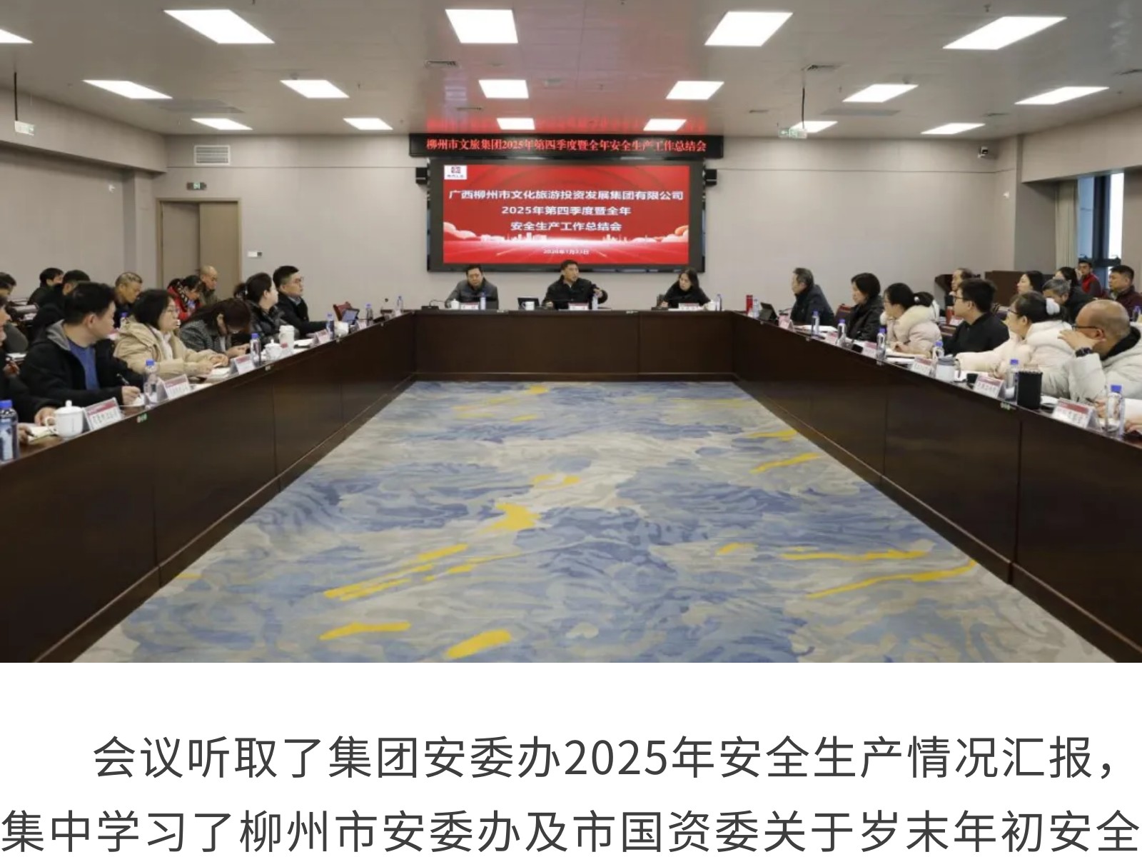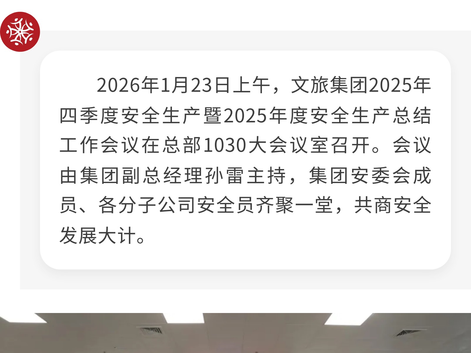 文旅集團(tuán)召開2025年安全生產(chǎn)總結(jié)會議 筑牢安全發(fā)展根基 發(fā)布時間:2026年01月27日 12時來源:本站原創(chuàng)瀏覽:45 人次