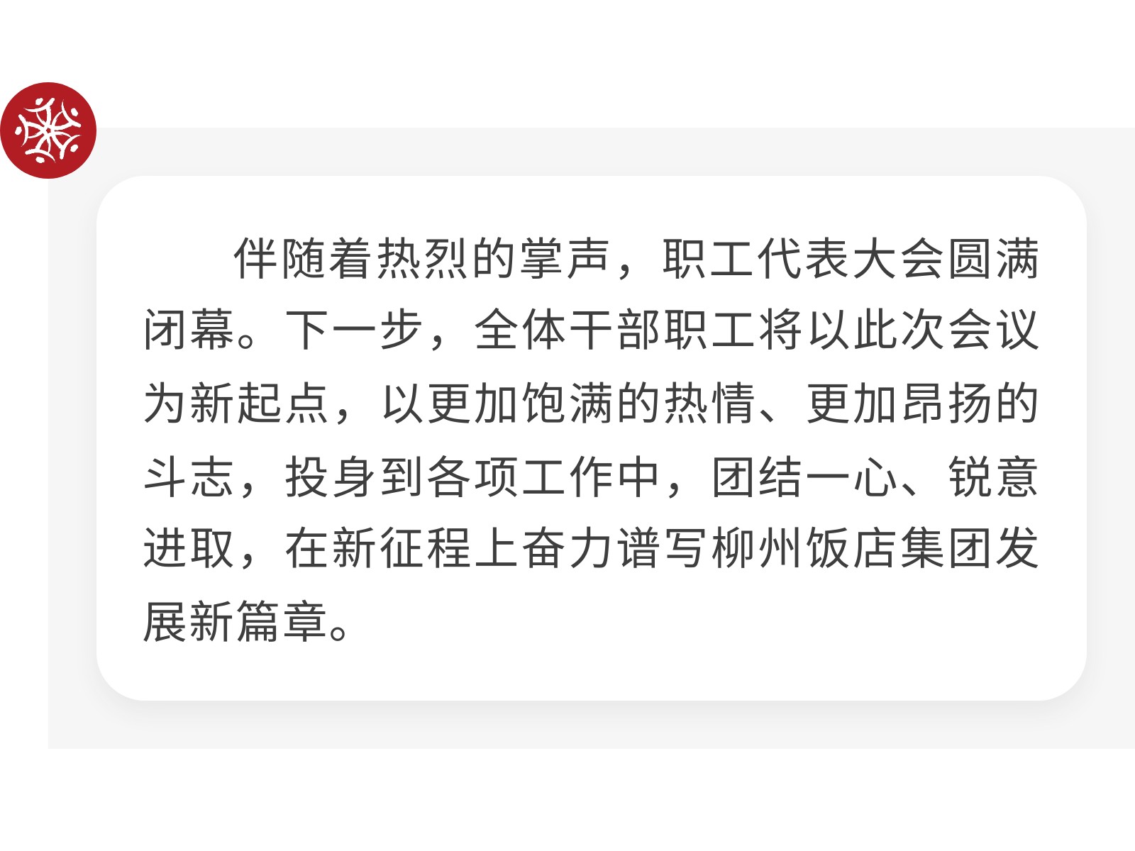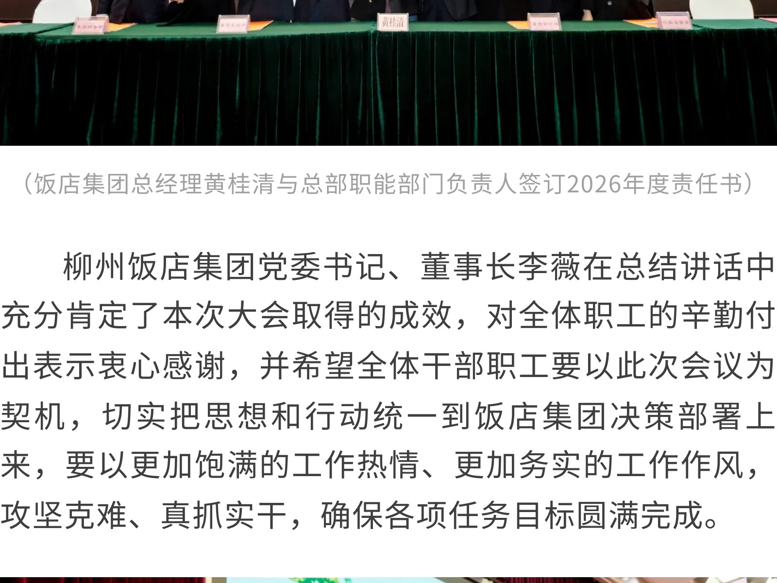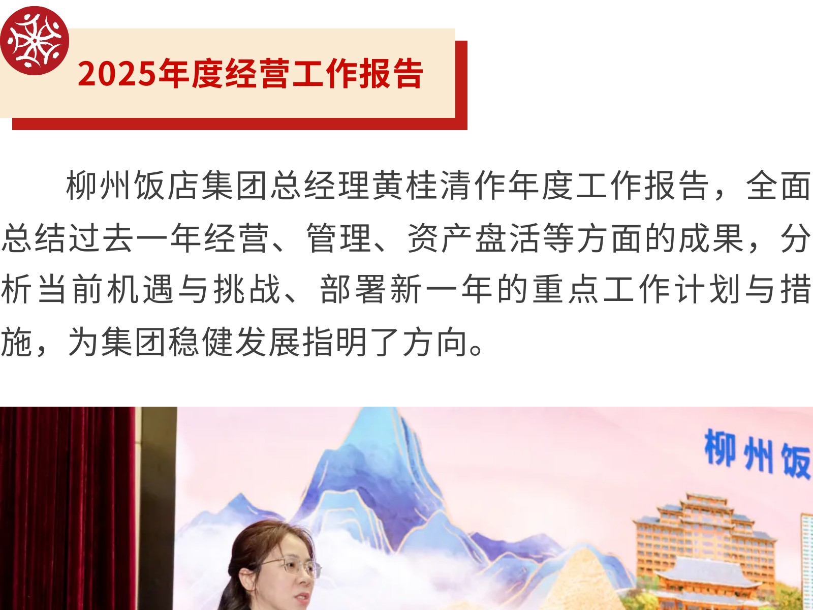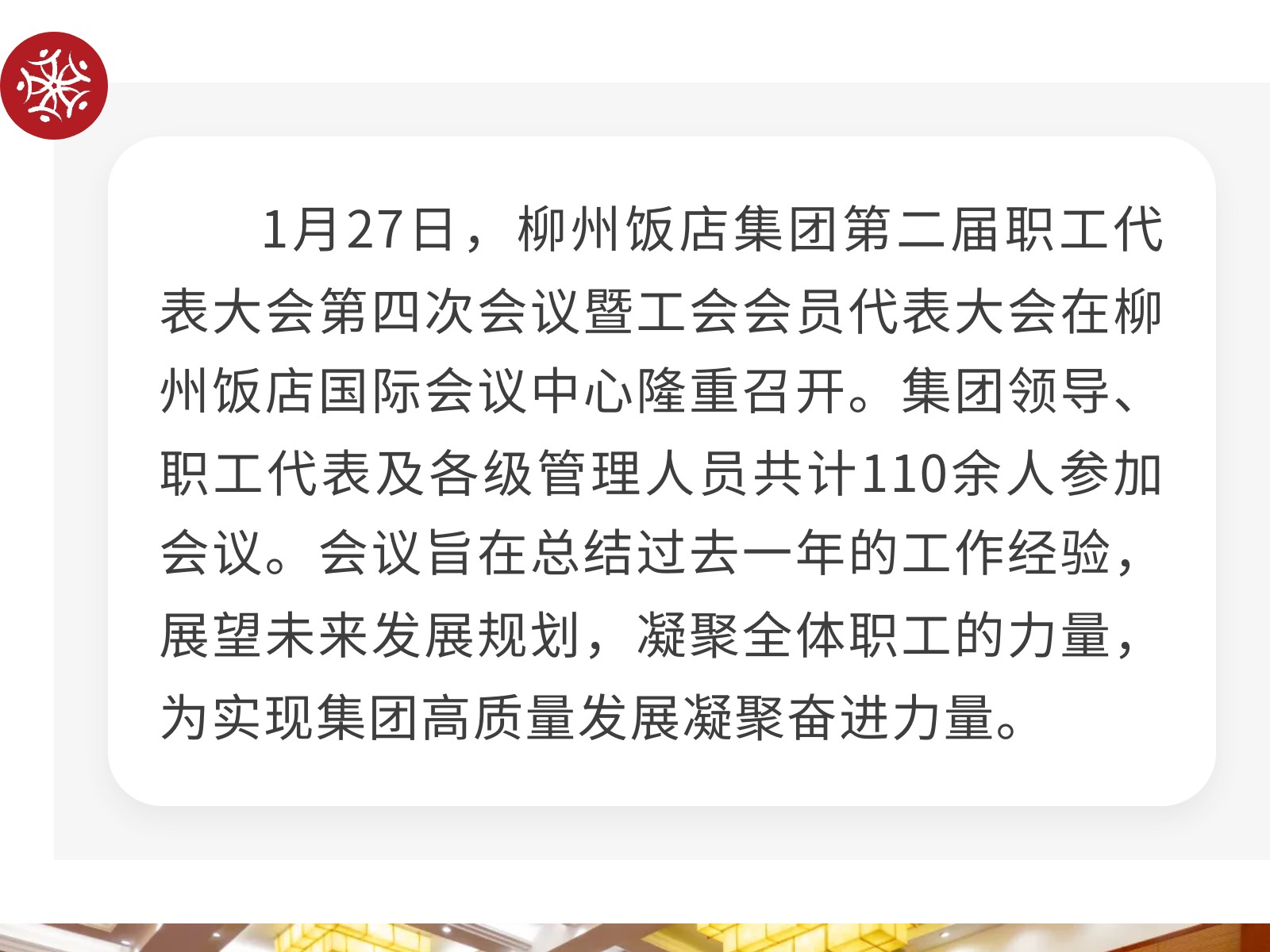 錨定新目標(biāo) 凝心聚力啟新程——柳州飯店集團(tuán)第二屆職工代表大會(huì)第四次會(huì)議暨工會(huì)會(huì)員代表大會(huì)勝利召開 發(fā)布時(shí)間:2026年01月30日 10時(shí)來源:本站原創(chuàng)瀏覽:61 人次