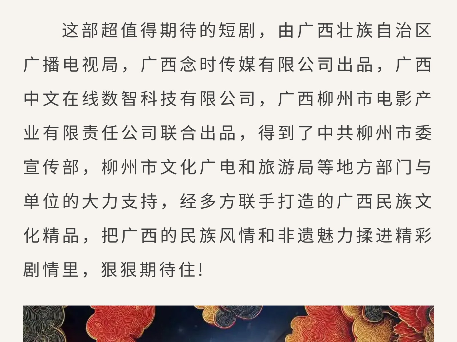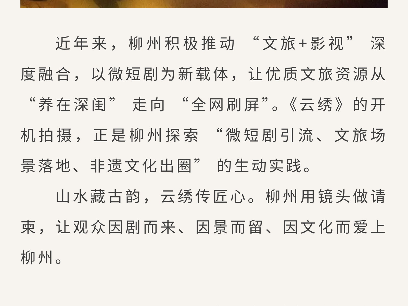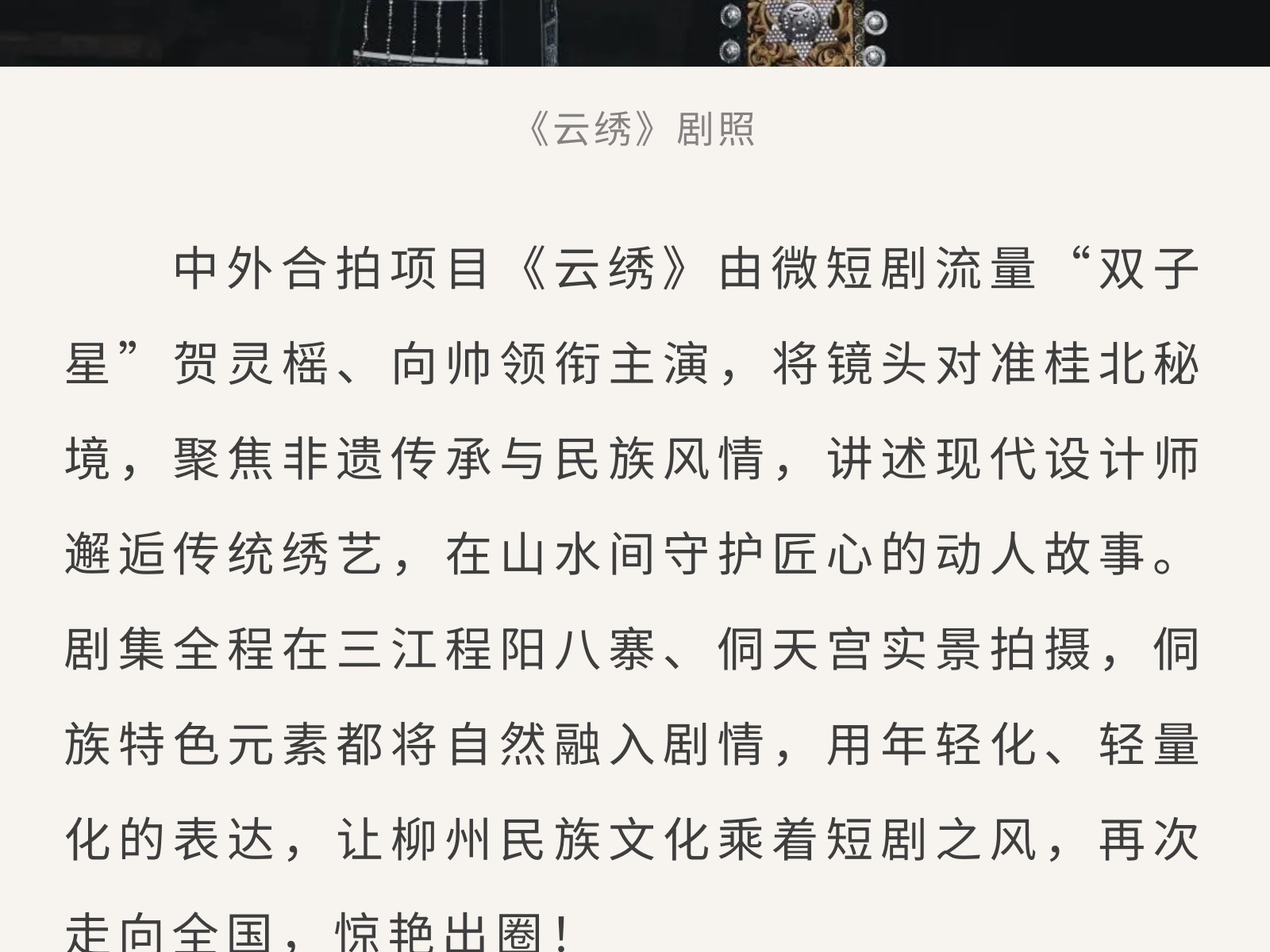 廣西“微短劇+文旅” 重點(diǎn)扶持項(xiàng)目《云繡》開(kāi)機(jī),把非遺風(fēng)情拍入鏡頭里 發(fā)布時(shí)間:2026年03月06日 10時(shí)來(lái)源:本站原創(chuàng)瀏覽:23 人次