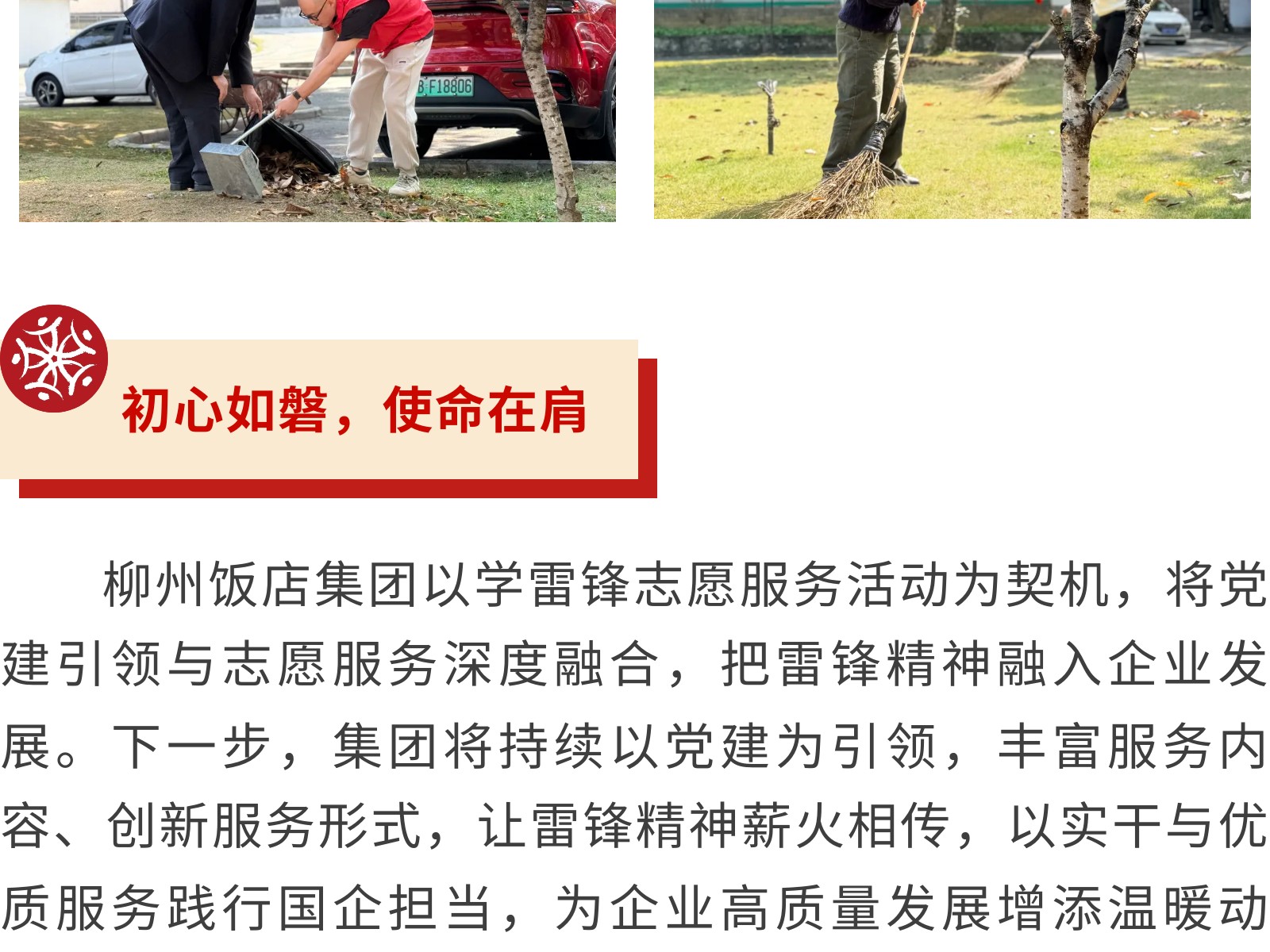 黨建引領(lǐng)聚初心 雷鋒精神綻芳華——柳州飯店集團開展學雷鋒志愿服務(wù)活動 發(fā)布時間:2026年03月10日 09時來源:本站原創(chuàng)瀏覽:16 人次